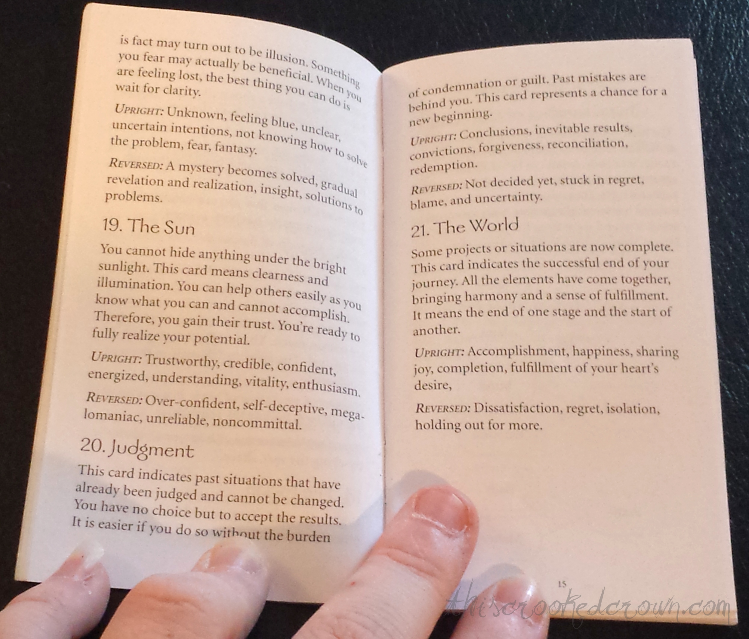 I also tend to find that its a very no-nonsense, tell-you-what-you-need-to-know kind of deck, and Ive been loving using it.