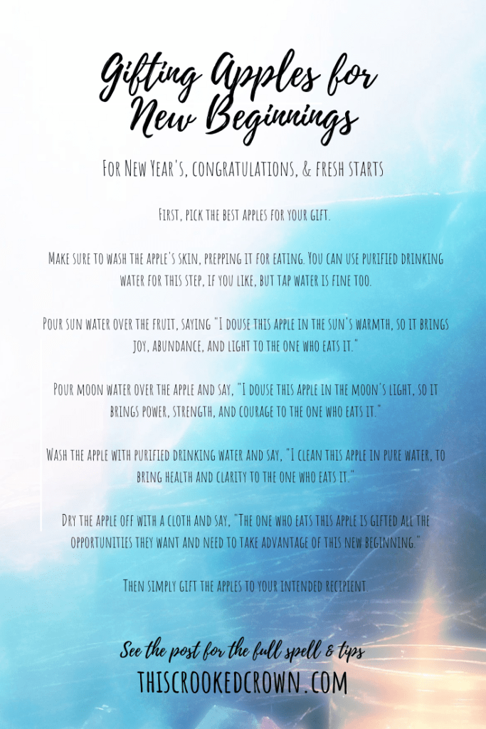 Dry the apple off with your cloth and say, “The one who eats this apple is gifted all the opportunities they want and need to take advantage of this new beginning.”