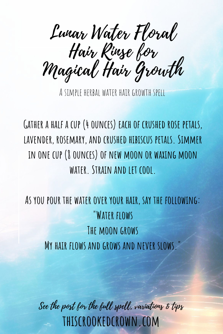 Moon water is often used in spells for hair growth. This hair rinse will help with hair growth.